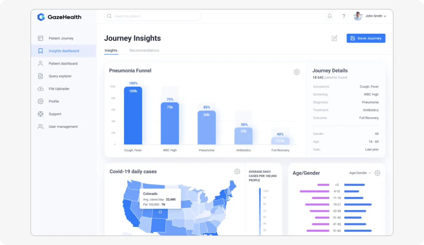 By the way, Devico develops solutions even to the strict-regulated niches, like healthcare. For example, we engaged in the creation of GazeHealth, a healthcare platform containing both an EMR system and an analytics tool. We ensured secure collecting, visualizing, and managing data about patients, ensuring mental health specialists could separately track and study case records of different patient groups.