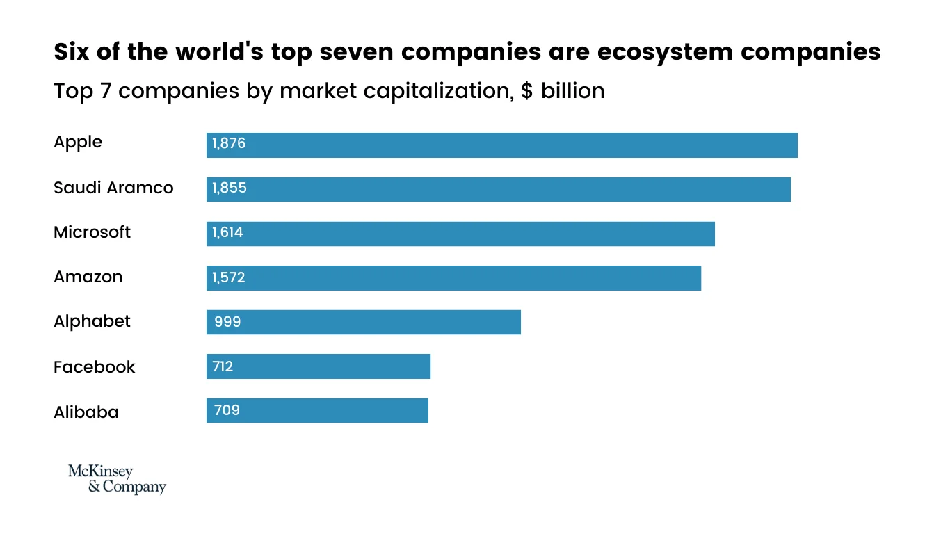 If you are still not convinced, we have nothing to say. But have something to show. Look at the diagram below. Top companies in the world are the ecosystem companies. Because digital ecosystems offer a multitude of benefits that extend beyond individual organizations. These advantages are reshaping industries and driving innovation, making them a vital component of digital transformation strategies.